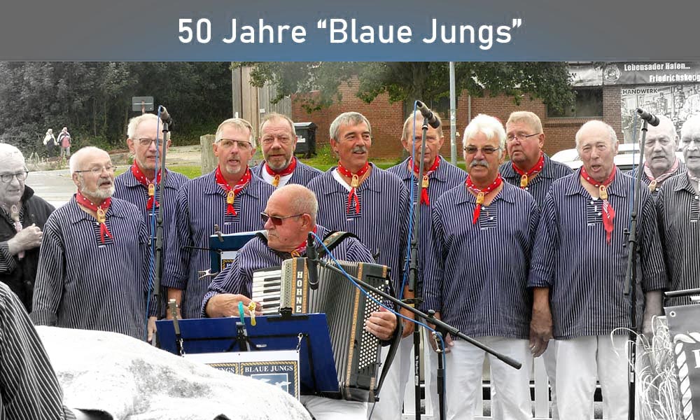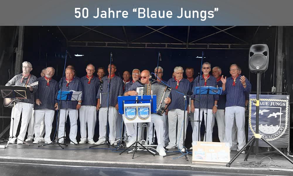 Die Chorgemeinschaft Blaue Jungs Friedrichskoog wurde im Jahr 1975 gegründet und ist heute, fast 50 Jahre später, nach wie vor sehr aktiv und gefragt im gesamten Dithmarscher Raum und dessen Umgebung. Eigentlich ist der Name "Blaue Jungs" nicht mehr zeitgemäß, denn es müsste nun eigentlich "Blaue Deerns und Jungs" heißen.